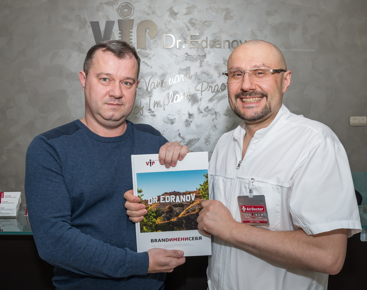 Встреча двух докторов, Сергея Едранова и Игоря Дзюбы, была насыщена обсуждением междисциплинарного взаимодействия в ежедневной стоматологической практике. Во время экскурсии по клинике Dr. Edranov врачи обсудили тенденции современной стоматологии, а также обменялись опытом. По окончании встречи под крепкое рукопожатие, в знак признания и уважения, Сергей Сергеевич преподнес Игорю Станиславовичу эксклюзивный подарок – юбилейное издание BRANDИМЕНИСЕБЯ с №156.