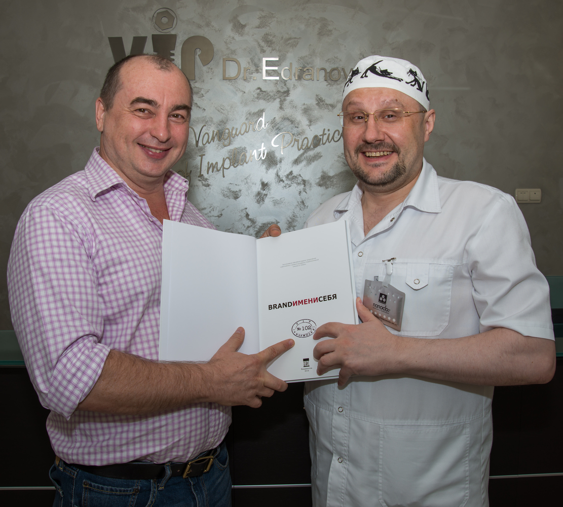Друзья, в первых числах мая, в клинике Dr. Edranov состоялось ещё одно торжественное вручение эксклюзивного юбилейного издания BRAND ИМЕНИ СЕБЯ. Книгу с порядковым номером 102 Сергей Едранов презентовал особенному пациенту - Евгению Головковскому. Стоит отметить, что Евгений Иванович со своей семьёй проживает в Сингапуре, но на протяжении нескольких лет свою улыбку и улыбку своих близких людей доверяет доктору Едранову. Особую признательность мы выражаем нашим особенным пациентам за оказанное доверие и благодарим за участие в своеобразном событийном марафоне!