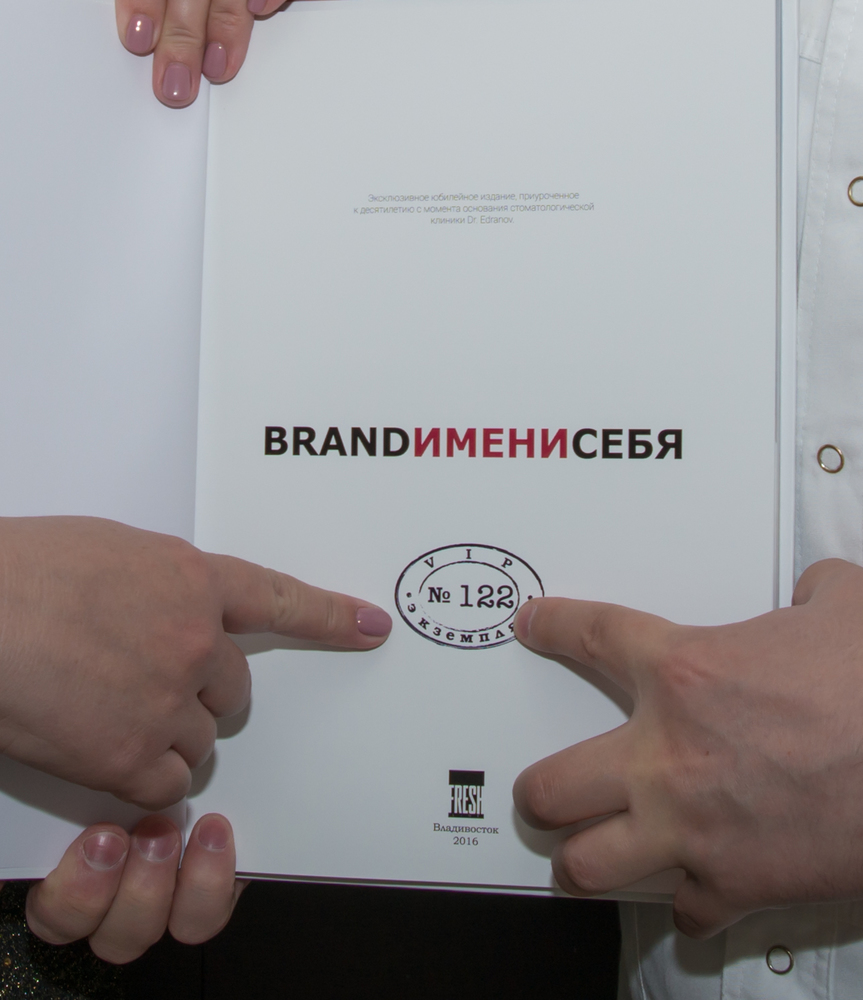 Мы ценим наших пациентов и их семейную преемственность в стенах клиники Dr. Edranov, но особенно ценно, когда наши пациенты преодолевают огромные расстояния и вновь и вновь приезжают к нам во Владивосток за стоматологической помощью. Безусловно, такие особенные и значимые люди, по праву заслуживают особенных подарков. За высокую преданность профессионалам клиники Dr. Edranov, особым подарком — уникальным, юбилейным изданием BRAND ИМЕНИ СЕБЯ с номером – № 122, доктор Едранов отблагодарил Татьяну Степанову. Проживая в Москве, в городе, который так далёк от нашего и там, где также можно получить высококвалифицированную стоматологическую помощь, Татьяна Анатольевна и вся её семья, уже на протяжении многих лет, доверяют свои улыбки доктору Едранову. Для нас это, пожалуй, высшая степень признания. Мы выражаем благодарность за участие в событийном фотомарафоне!