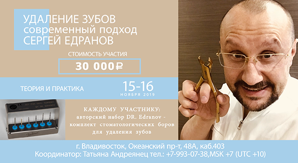 Рады сообщить, что с 15-16 ноября пройдет лекционно-практический курс "Удаление зубов. Современный подход. Теория и практика", который проведет Едранов Сергей Сергеевич.