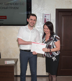 В Учебном центре доктора Едранова есть еще одна замечательная традиция! По окончании мероприятия дипломы выдаются не только слушателям и курсантам. Именного диплома с золотой печатью всегда удостоены и лектора. Вот и сегодня Сергей Едранов вручает диплом, со словами благодарности, Артавазду Зограбяну.