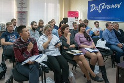 Разгар теоретической части пришелся на послеобеденное время, когда лектор обратил внимание слушателей на формирование операционного доступа и ушивание операционных ран при имплантации и костнопластических вмешательствах. Под взглядом внимательной аудитории Доктор Едранов разобрал принципы операционного доступа, сопоставления краев раны без мобилизации и приступил к лекции о моделировании мягких тканей в области имплантатов. Заинтересованной публике предстояло узнать в чем секрет каждой из методик раскрытия имплантата.