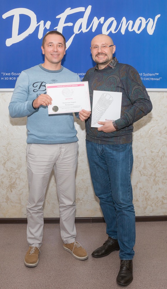 Вот и закончилось тематическое погружение в работу с мягкими тканями. Полагаем, что каждый слушатель по окончании курса по-иному посмотрел на то, что ранее уже было известно. Традиционно всем участникам были вручены дипломы УЦДЕ с золотой печатью, а также персональный подарок от лектора - "Консультации по имплантации Доктора Едранова". Общее фото, наравне с персональными, пополнит наш событийный фотоальбом, а память - теплыми воспоминаниями о прошедшем мероприятии. До новых встреч!