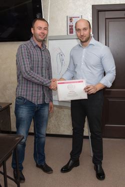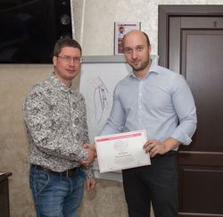 По окончании учебной программы были традиционно сделаны итоговые! Групповое и индивидуальные фотографии курсантов с лектором на вручении дипломов. С золотой печатью также вручили диплом Евгению Рощину.