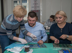 Второй учебный день в рамках курса Марины Приямпольской слушатели познали практические аспекты основ периохирургии и отработали методики хирургического удлинения клинической коронки зуба на моделях. Так, в первой половине дня отрабатывали резективные манипуляции с твёрдыми тканями - остеопластика, остеотомия. Затем, уделили время отработке практических навыков по способам сшивания краёв операционной раны – узлы отрабатывали на шнурках – шьём и вяжем! Вторую половину дня посвятили формированию и манипуляциям с лоскутами, которые отрабатывали уже на биологических моделях.