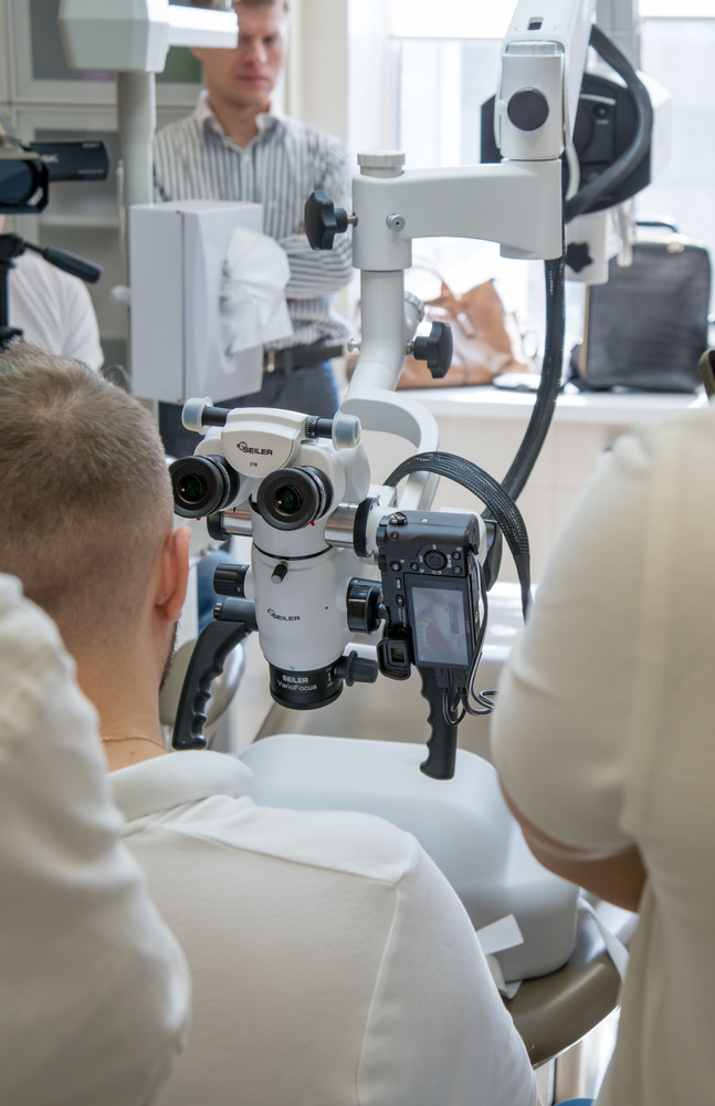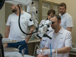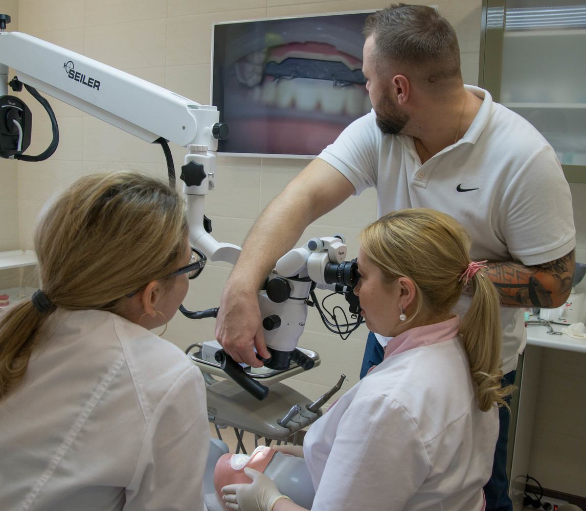 Специально для сотрудников клиники Dr. Edranov, Николай Брусов провёл индивидуальный курс обучения. Мастер-класс с отработкой практических навыков был направлен на знакомство с работой под большим увеличением, эргономику работы на микроскопе и препарирование под виниры. Мануальные навыки по работе с микроскопом отработали все доктора клиники Dr. Edranov и их ассистенты. Заключительным аккордом в индивидуальной программе обучения стало обсуждение конкретного клинического случая. Врачи коллегиально обсудили возможности ортопедической реабилитации данного пациента.