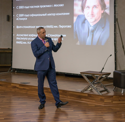 Второй день Конференции стартовал с доклада Дмитрия Шумовского, посвященного нюансам методики немедленной имплантации. Лектор начал свой спитч с основных принципов остеогенеза, а также предложил вниманию слушателей клинические кейсы немедленной имплантации, после чего участники обсудили вопросы, касающиеся биотипа десны и повреждений нёбной стенки лунки. Руководствуясь принципом «лучше один раз увидеть, чем сто раз услышать» следующий лектор, Сергей Едранов, пригласил слушателей на «экскурсию» в операционную, перед этим раскрыв слушателям свою профессиональную философию и то, что скрыто в названии доклада. После детального пошагового видеопротокола клинического случая – восстановления функциональности и эстетики зубного ряда при тотальной адентии – лектор ответил на вопросы о критериях выбора длины пинов, толщины десны в области подсаженного трансплантата, способах его деэпителизации и др. Доклад Владислава Бабинцева, местами противоречивый, вызвал множество эмоций среди аудитории и послужил почвой для профессиональных дискуссий. Слушатели подмечали интересные места доклада с «дерзким» названием, соотносили услышанное с собственной практикой, уточняли необходимое расстояние до платформы имплантата, очередность выпиливания кости и другие тонкости. Стоматолог-хирург из Санкт-Петербура Олег Пономарев затронул тему кровоснабжения костной ткани, представив «механизм» этого процесса, а затем плюсы и минусы остеогенеза.