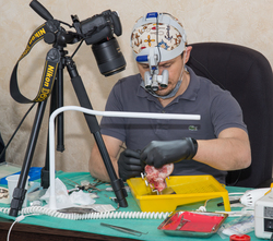05-06 ноября 2016 года состоялся лекционно-практический курс Алексея Фролова «Одноэтапная дентальная имплантация с минимальной травмой тканей. Эстетика и функция в сложных клинических ситуациях». Мероприятие прошло при поддержке Стоматологической Ассоциации России, и по окончании обучения каждый стоматолог получил 12 кредитов для НМО или ДПО. В рамках обучения первого и второго дня слушателям представлялись теоретические аспекты, а также уделили внимание отработке практических навыков. Наборы для проведения имплантации были предоставлены компанией Dental Сфера. Отдельно стоит упомянуть практическую часть второго дня обучения. Алексей Фролов наглядно и схематически продемонстрировал аудитории и объяснил как сохранить зуб при наличии трещины. Затем провел мастер-класс, включающий в себя одноэтапную установку имплантатов с расщеплением, установку коротких имплантатов, демонстрацию рифового узла, композитный шов и кинезиотейпирование. Логическим завершением обучающего мероприятия стало вручение дипломов и свидетельств, подтверждающих получение 12 кредитов для НМО или ДПО по специальностям: стоматология хирургическая, стоматология ортопедическая, челюстно-лицевая хирургия. Дипломом об успешно проведенном мероприятии был награжден и лектор. Сергей Сергеевич вручил Алексею Фролову диплом Учебного центра Доктора Едранова с золотой печатью. На память о приезде во Владивосток руководитель УЦДЕ подарил медицинскую литературу - учебники, автором которых он является. Помимо научных книг Сергей Едранов презентовал Алексею Фролову и экземпляр глянцевого издания.