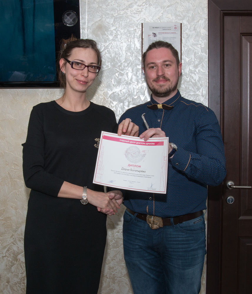 08.04.2017 года в нашем Учебном центре стартовал лекционно-практический курс Александра Павлова – «Методика постановки системы коффердам (раббердам)». В первой половине дня состоялось теоритическое знакомство со всеми компонентами и инструментами системы коффердам, а так же аксессуарами и их аналогами для эффективной изоляции рабочего поля. Практикум на анатомически правильных моделях зубных рядов верхней и нижней челюсти прошёл во второй половине дня учебного мероприятия. По окончании лекционно-практического курса состоялось традиционное вручение дипломов слушателям и лектору, которое мы запечатлели на память.