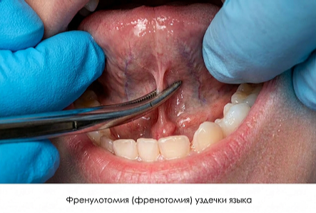 Если уздечка отличается чрезмерной толщиной, а также в случаях, когда это сочетается с кюретажем в области имеющейся диастемы, проводится