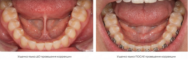 Самой распространённой анатомической аномалией уздечки языка является её неправильное расположение – прикрепление к нижней части языка не посередине, а существенно ближе к его кончику. Даже при нормальной анатомической длине уздечка в таком случае считается патологически короткой. Зачастую этот дефект не причиняет ощутимых неудобств, в отличие от анкилоглоссии – самого, пожалуй, серьёзного дефекта уздечки языка. Её характеризует совокупность трёх анатомических патологий: область прикрепления уздечки смещена с середины языка к его кончику, длина уздечки значительно меньше нормы, эластичность и подвижность языка заметно снижены. Негативное влияние анкилоглоссии на зубочелюстную систему весьма существенно. Так, младенцы, страдающие ею, не могут правильно захватывать грудь матери, поэтому не насыщаются в достаточной степени 2.
